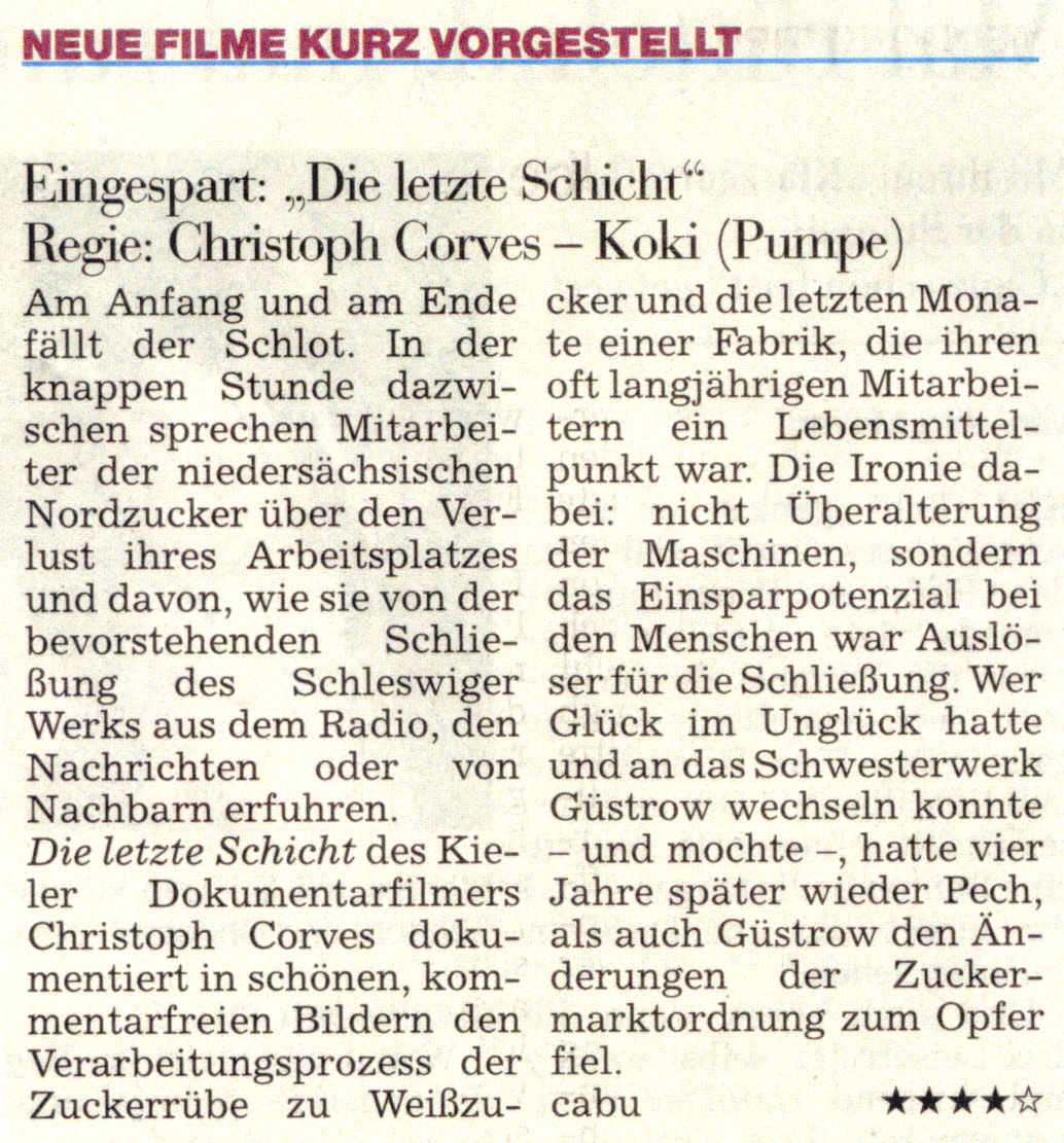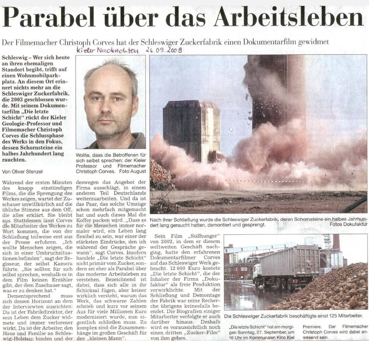 „Die letzte Schicht“ ist ein Dokumentarfilm über die Schließung der Zuckerfabrik in Schleswig.